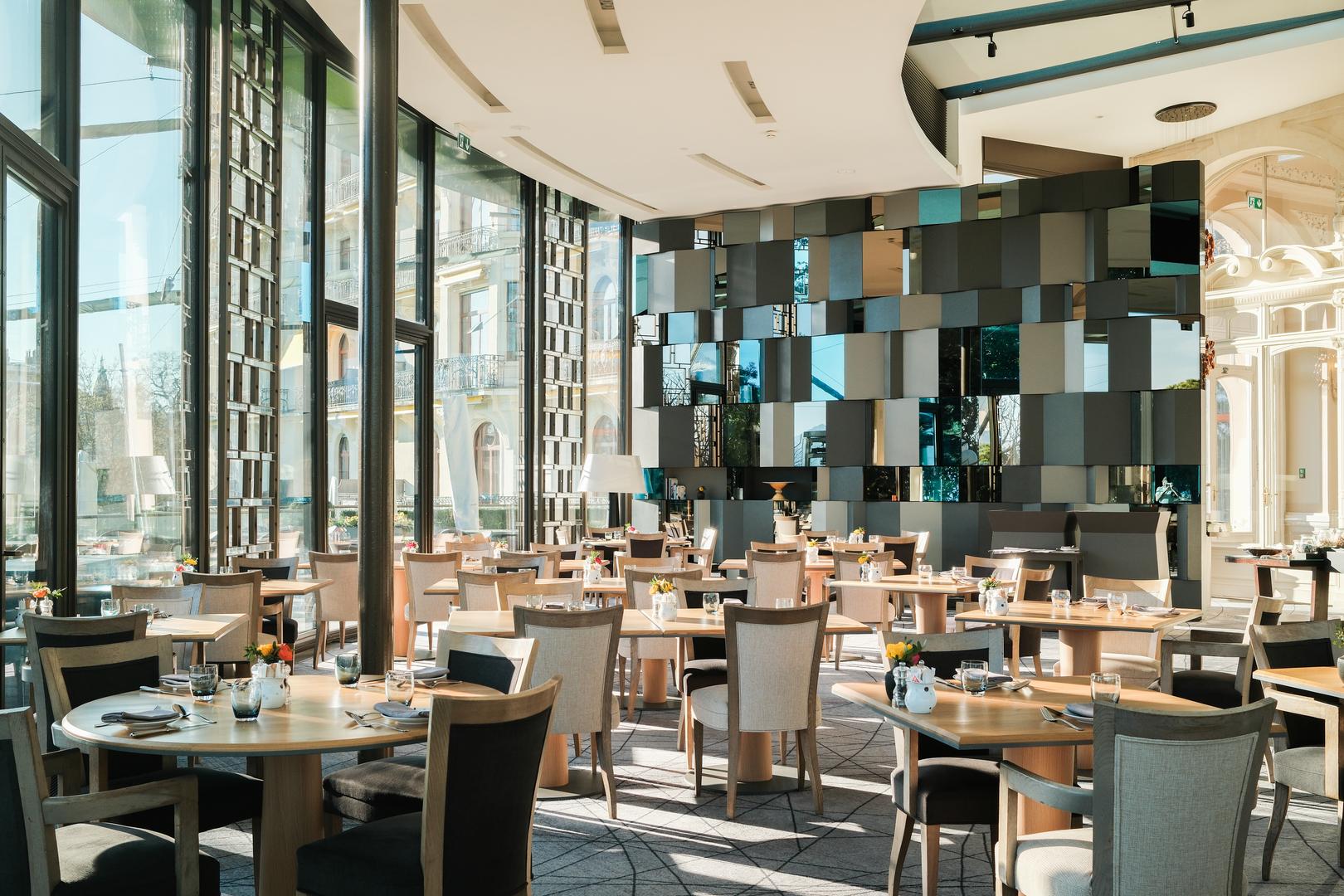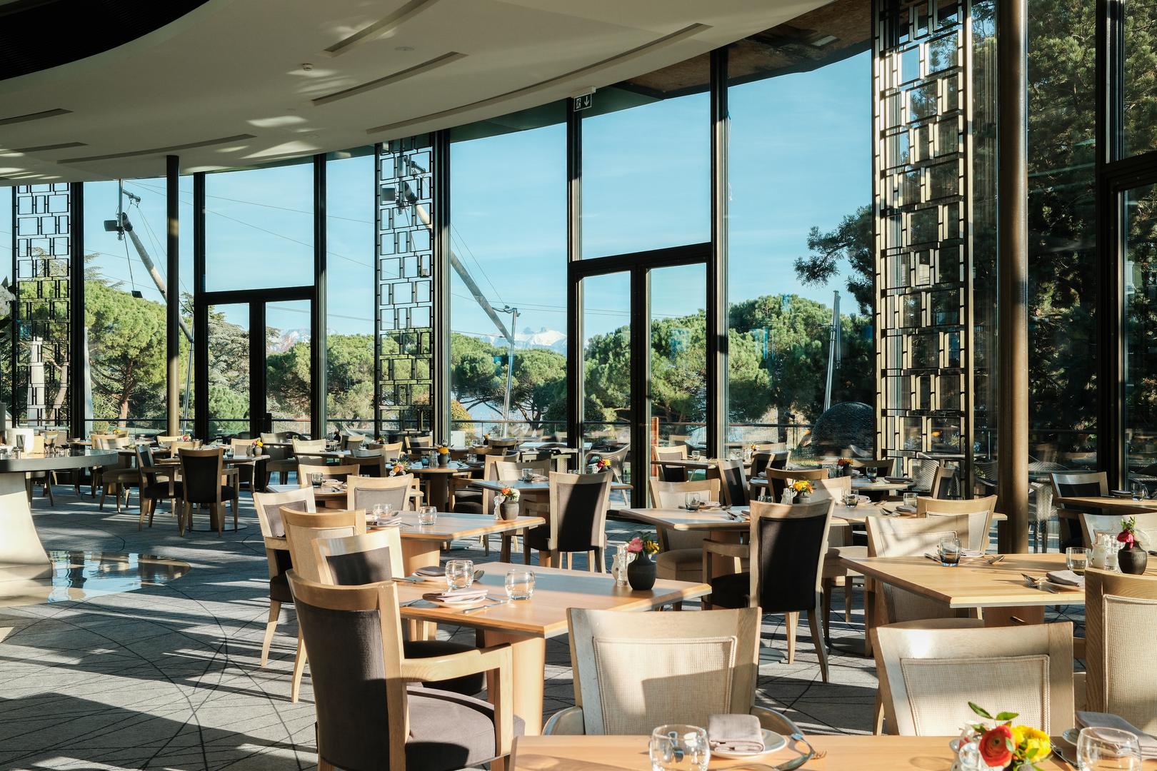Mit seinen verglasten Wänden mit Blick auf die natürliche Umgebung ist der Panoramablick vom Speisesaal, in dem das Frühstück* serviert wird, erstaunlich!