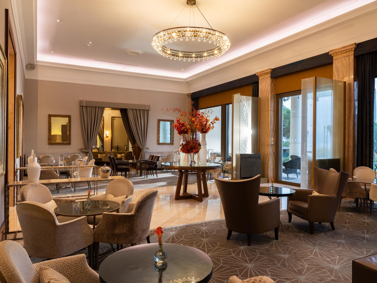 Als Ort des Empfangs und der Begegnung passt sich die Lobby Lounge allen Jahreszeiten und Wünschen an und behält dabei ihr schlicht elegantes Ambiente bei, das Gäste und Besucher gleichermaßen anspricht.