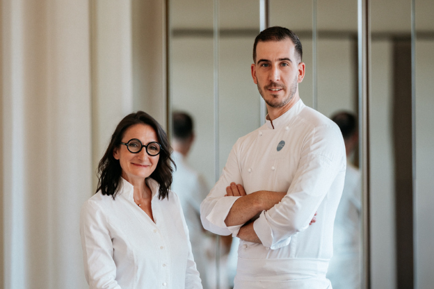 « C’est en parcourant ce chemin helvétique qu’est née la signature culinaire de mon restaurant lausannois. Une cuisine sensible et florale qui célèbre le lac et les parfums de la plaine aux sommets alpins », nous raconte Anne-Sophie Pic en complicité avec Jordan Theurillat, chef de Pic au Beau-Rivage Palace. C’est à lui en effet que la Cheffe a confié, en toute confiance, les clés de sa maison lausannoise. Evoluant depuis plus de 10 ans dans la Maison Pic, Jordan Theurillat s’imprègne chaque jour de l’univers culinaire de la Cheffe, animé d’une passion commune pour la nature, le terroir, les rencontres. A ses côtés, il peut compter sur une brigade passionnée et un Chef pâtissier virtuose, Baptiste Tisserand.